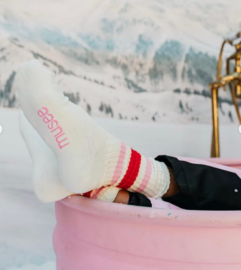 Cozy up from the cold with this relaxing duo. Drop this soothing, winter-scented bath balm into warm water, then slip on the ultra-soft socks for the perfect end to a chilly day.