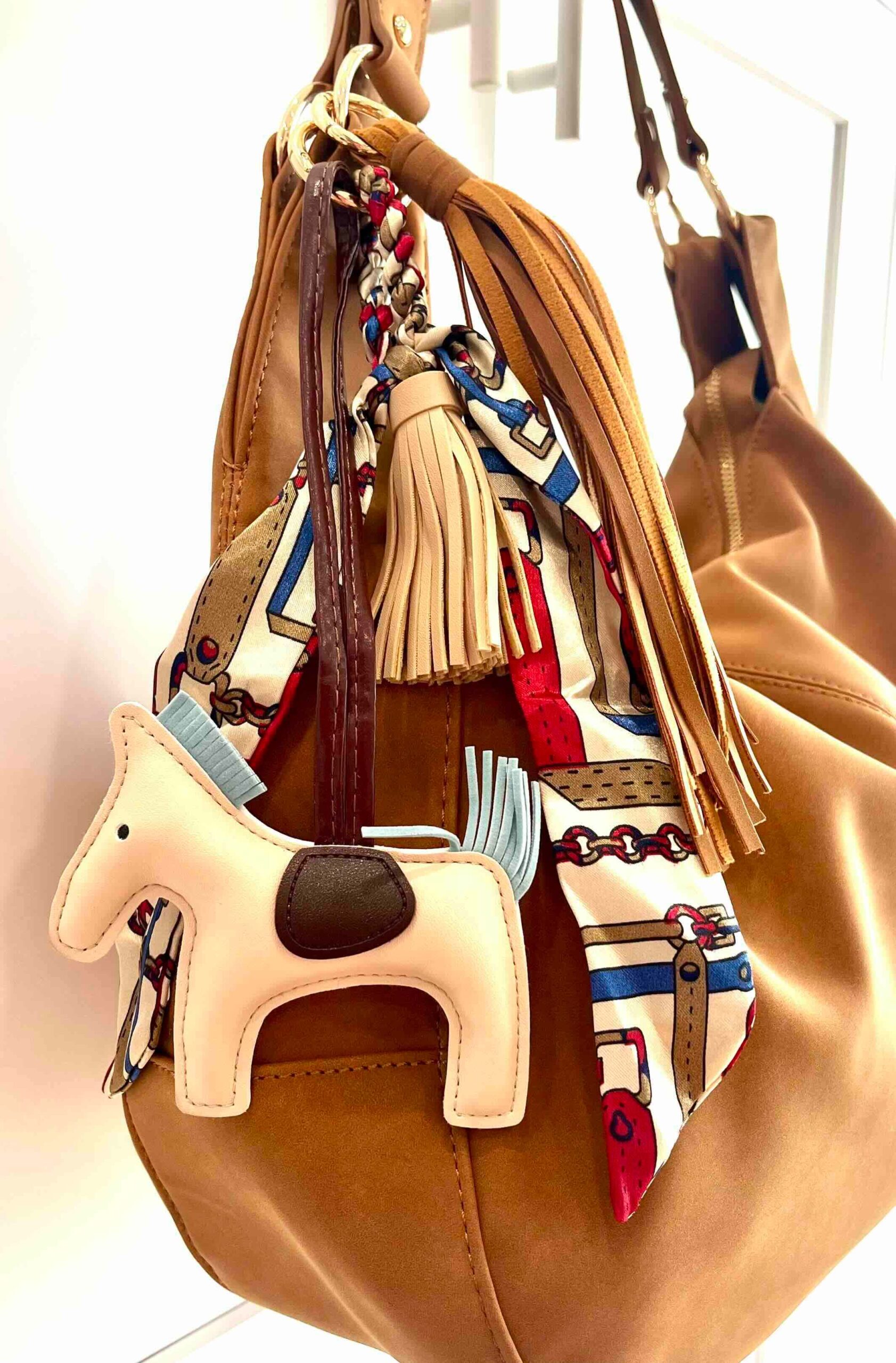 The Sandpiper offers ample space for your essentials while the elegant tassel adds a chic finishing touch. The interior is fully lined and features two open pockets, as well as a zippered pocket. Don’t miss out on a versatile accessory that effortlessly elevates any outfit. Samantha has chosen to add the horse charm & scarf to elevate the bag to the next level. All tassels are easily removable.