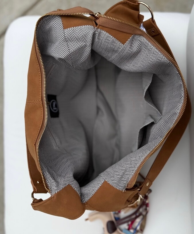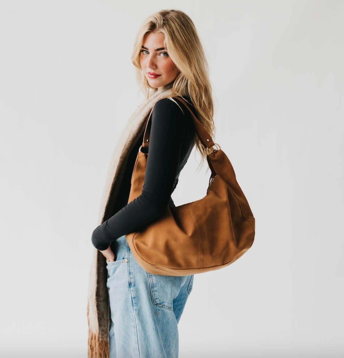 Samantha has discovered the perfect Tan Suede Tassel bag that blends practicality with style!